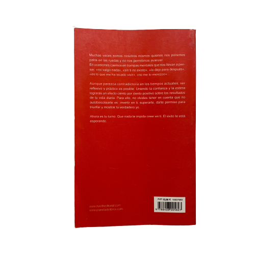 En ocasiones caemos en trampas mentales que nos llevan a pensar: «no valgo nada», «sin ti no existo», «lo dejo para después», «es lo que me ha tocado vivir», «no me lo merezco »… Uniendo la confi anza y la estima lograrás un efecto ciento por ciento positivo sobre los resultados de tu vida diaria. Para ello, no olvides tener en cuenta que no autoboicotearte es: invertir en ti, superarte, darte permiso para triunfar y mostrar tu verdadero yo.
