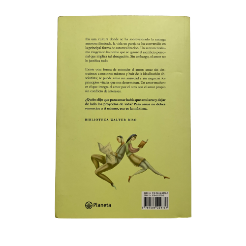 En una cultura donde se ha sobrevalorado la entrega amorosa ilimitada, la vida en pareja se ha convertido en la principal forma de autorrealización. Un sentimentalismo exagerado ha hecho que se ignore el sacrificio personal que implica tal abnegación. Sin embargo, el amor no lo justifica todo. Existe otra forma de entender el amor: amar sin destruirnos a nosotros mismos y huir de la idealización absolutista; se puede amar sin ansiedad y sin negociar los principios vitales que nos determinan. Un amor maduro es el que integra el amor por el otro con el amor propio sin conflicto de intereses. ¿Quién dijo que para amar había que anularse y dejar de lado los proyectos de vida? Para amar no debes renunciar a ti mismo, ésa es la máxima.